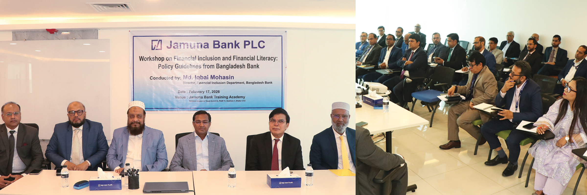সাম্প্রতিক যমুনা ব্যাংক পিএলসি এর উদ্যোগে প্রধান কার্যালয়ের সকল বিভাগীয় প্রধানদের অংশগ্রহণে আর্থিক অন্তর্ভুক্তি ও আর্থিক সাক্ষরতা ‘‘পলিসি গাইডলাইন” বিষয়ে একটি ওয়ার্কশপ অনুষ্ঠিত হয়। উক্ত কর্মশালাটি আনুষ্ঠানিক ভাবে উদ্বোধন করেন ব্যাংকের অতিরিক্ত ব্যবস্থাপনা পরিচালক এবং সিওও মোঃ আব্দুস সালাম। প্রধান অতিথি হিসেবে উপস্থিত থেকে কর্মশালাটি পরিচালনা করেন বাংলাদেশ ব্যাংকের ফাইন্যান্সিয়াল ইনক্লুশন ডিপার্টমেন্ট এর সম্মানিত পরিচালক জনাব মোঃ ইকবাল মহসীন। কর্মশালায় প্রধান অতিথি প্রান্তিক জনগোষ্ঠীর কাছে ব্যাংকিং সেবা পৌঁছে দেয়ার গুরুত্ব এবং গ্রাহকদের আর্থিক অন্তর্ভুক্তি নিশ্চিত করতে আর্থিক সাক্ষরতার প্রয়োজনীয়তা নিয়ে বিস্তারিত আলোচনা করেন। বাংলাদেশ ব্যাংক কর্তৃক নির্ধারিত সর্বশেষ নীতিমালাসমূহ কিভাবে মাঠ পর্যায়ে কার্যকর করা যায়, সে বিষয়ে বিভাগীয় প্রধানদের দিক নির্দেশনা প্রদান করেন। অনুষ্ঠানে ব্যাংকের উপ-ব্যবস্থাপনা পরিচালকগণ জনাব নূর মোহাম্মদ, জনাব এ. কে. এম. আতিকুর রহমান, জনাব মোঃ শাহীদুল ইসলাম এবং জনাব মোহাম্মদ জাহাঙ্গীর আলম সহ ঊর্ধ্বতন কর্মকর্তারা উপস্থিত ছিলেন।